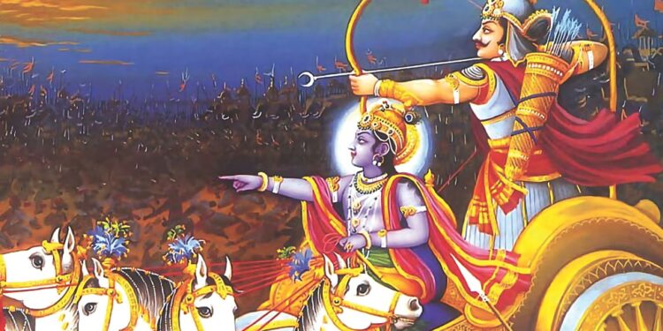 What do we do when we want a solution to some problem? We go to our parents and do a Prarthana, which we can call a request with surrender. Arjun went to Bhagwan Krishna to find the solution. He did Prarthana to Krishna to help him find the solution.