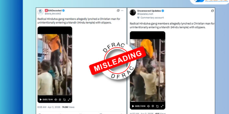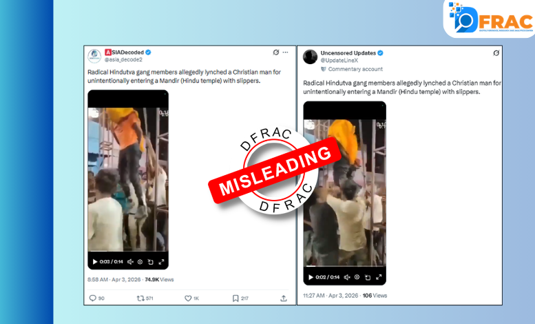 The fact-check by DFRAC reveals that the viral video claiming a Christian man was lynched by Hindus for entering a temple with slippers is misleading and completely false. Investigation shows that the footage is not recent and previously circulated in April 2024 with a different false claim regarding the hanging of a Dalit youth in Rajasthan. At that time, the Rajasthan Police officially debunked the video as fake, confirming no such incident occurred in the state and warning against the spread of such antisocial content. Consequently, there is no evidence to support the current claim of communal violence, as the video is old and has been repeatedly used to spread misinformation across various social media platforms.
