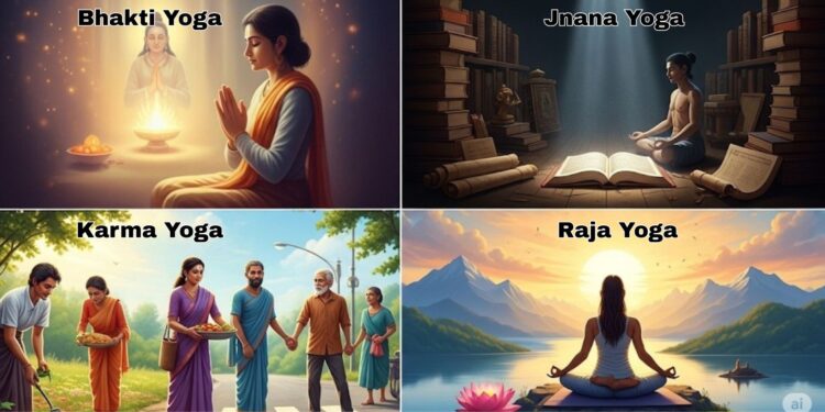 Hindu philosophy is ancient and diverse, encompassing several paths to spiritual development and self-realization. Of its most significant concepts are the four yogas: Bhakti Yoga, Jnana Yoga, Karma Yoga, and Raja Yoga. Each represents a unique means of realizing union with the divine and understanding the nature of the self, testifying to Hindu Dharma’s profound regard for individual temperaments and inclinations.