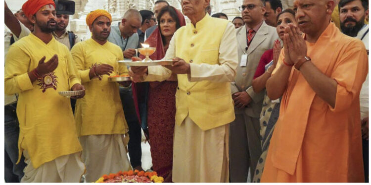 MAURITIUS, September 13, 2025 (The Hindu): Mauritius Prime Minister Navinchandra Ramgoolam on Friday offered prayers at the Ram Temple in Ayodhya and performed aarti of Ram Lalla. He was accompanied by his wife, Veena Ramgoolam and a 30-member delegation. With this visit, Mr. Ramgoolam became the second head of state, after the Prime Minister of Bhutan, to offer prayers at the temple. The Mauritius Prime Minister spent about half an hour in the temple complex and also reviewed the construction work. At the temple premises, a short film on the construction of the Ram Mandir was presented to the visiting Prime Minister and his delegation by the Tata Group. The film highlighted the grandeur, craftsmanship and distinctive features of the temple.