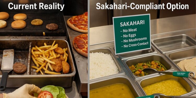 Even though the sakahari diet is very popular, including among students and faculty at American universities, it is often difficult for Sakaharis to get food, particularly due to the no-contact restriction, i.e., the restriction that sakahari food should not make contact with meat or other restricted items while being prepared or served. Dining facilities often fail to meet this criterion in their vegetarian preparations due to many reasons, examples include: using the same cutting utensils or serving utensils for vegetarian and meat pizzas, frying (vegetarian) french fries and meat items in the same oil, using the same gloves to touch meat and vegetables while making salads, making vegetarian quesadillas on the same grill with meat-items etc. I personally struggled to find sakahari options while in school and college, at restaurants, and while travelling, similarly I have talked to innumerable students, colleagues, and friends that similarly struggle to find satisfactory food at dining halls and restaurants. I am interested in working towards ameliorating this situation at Dartmouth and beyond (e.g., at dining halls, restaurants, in flights, etc.).